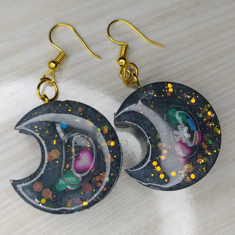 گوشواره دخترونه مدل ماه رزینی آکواریومی