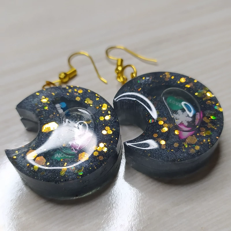 گوشواره دخترونه مدل ماه رزینی آکواریومی