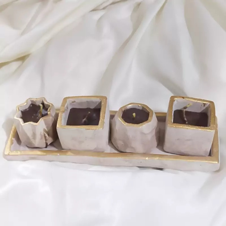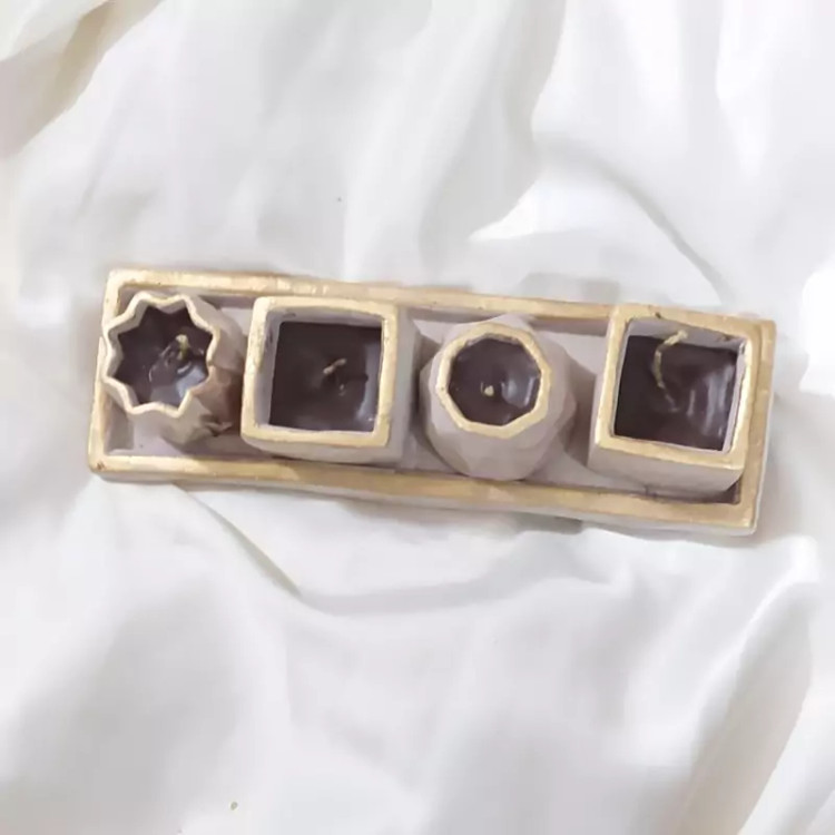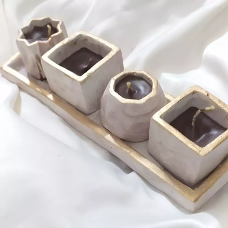 دارای 4شات شمع با فیتیله نسوز شده😍 و یه سینی زیرش بقیه محصولاتم تو غرفم و قفسه اکسسوری سنگی بیین😍